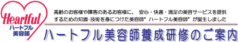 | 〜 全美連・シルバーサービス振興会は「ハートフル美容師養成研修」をスタートさせました〜 全美連とシルバーサービス振興会では、高齢のお客様や障害のあるお客様に対応するために必要な知識・技術を身につけるための「ハートフル美容師養成研修」をスタートさせました。是非、ご受講ください。 |